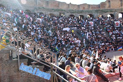Sembrava di essere anche stamane ad uno di quei concertoni che hanno affollato il Cartellone del Teatro Romano negli ultimi mesi