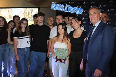 A questo punto il presidente Petito ha letto la motivazione del conferimento del Premio "Arco di Traiano" che non è stato stavolta consegnato da lui ma da tutti i ragazzi del Liceo Scientifico presenti all'evento (nella settima ed ottava foto in basso).