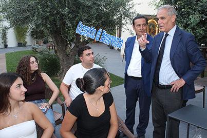 Poi Ziantoni, anche su nostro invito per una foto di gruppo, si è portato presso i giovani studenti del Liceo "Rummo" (nella terza e quarta foto in basso) ed ha interloquito con loro partendo dal racconto di un episodio che gli è capitato.