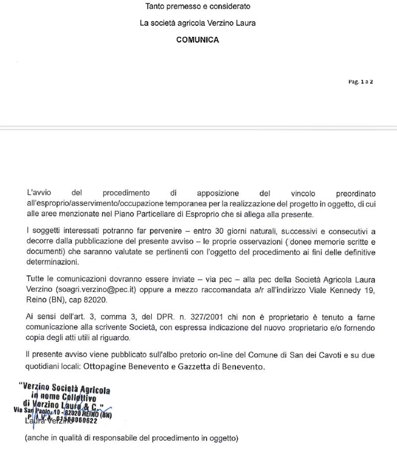 Avvio del procedimento di apposizione del vincolo preordinato all'esproprio/asservimento/occupazione temporanea