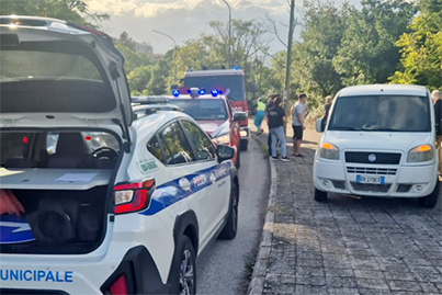 Un'auto della Polizia Municipale di passaggio su quella strada, con il tenente Parente, ha notato l'incidente ed è prontamente intervenuta per evitare che la vettura continuasse a scivolare nella scarpata con il ferito a bordo.