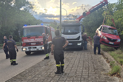 La donna nell'incidente ha perso il controllo dell'auto e marciando all'indietro ha finito la sua corsa sul marciapiede in senso opposto, in corrispondenza di una scarpata.