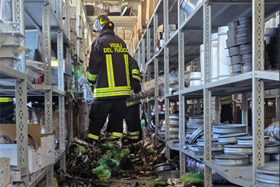 I locali interni del deposito, che sono stati danneggiati, sono stati raggiunti dal fumo nero proveniente dal rogo con le vetrate che sono andate completamente distrutte.