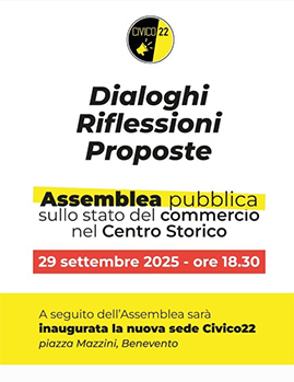 Civico 22 promuove un momento di confronto aperto con cittadini, commercianti e istituzioni, per analizzare le difficoltà del settore e proporre e raccogliere idee utili a rilanciare la vitalità economica e sociale del Centro Storico.