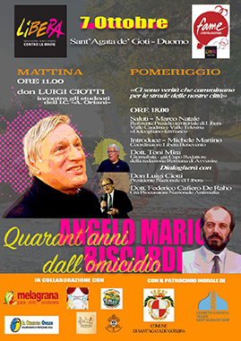 E' questo il filo conduttore delle iniziative promosse da Libera nel solennizzare il quarantennale dell'uccisione di Angelo Mario Biscardi, vice sindaco ed assessore all'Urbanistica al Comune di Sant'Agata dei Goti, ammazzato il 3 ottobre 1985.