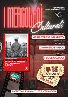 Il prossimo 15 ottobre, alle 18.30, la Fondazione Gerardino Romano, nella sede sociale di Telese Terme, ospiterà l’incontro con il critico cinematografico Giampiero Frasca per esaminare la storia del cinema e la storia nel cinema, riflessioni di metodo e di percorsi didattici racchiusi nel volume "Schermi del Novecento. La storia del XX secolo vista attraverso il cinema”, Edizioni Lindau 2025.