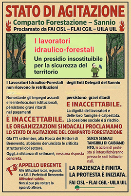 Le segreterie provinciali di Fai Cisl, Flai Cgil e Uila Uil annunciano lo stato di agitazione dei lavoratori idraulico-forestali sanniti