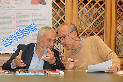 A prendere la parola è stato quindi Nazzareno Orlando (nella foto di apertura è a sinistra ed a destra è Luigi Ottaiano), il presidente dell'Ente, che, in piedi, ha voluto esprimere solidarietà al ministro dell'Università e della Ricerca, Anna Maria Bernini, da cui dipende il Conservatorio, è stata oggetto di un attacco ingiustificato, per il suo ruolo istituzionale, all'Università di Siena dove gli studenti l'hanno accolti con epiteti indecenti e lei a rispondere: Studiate piuttosto.
