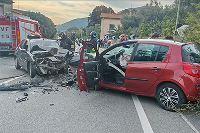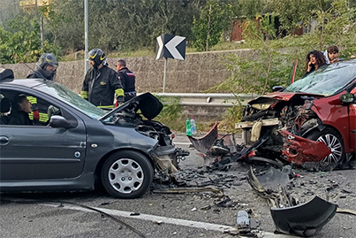 Un impatto frontale tra due autovetture si e' verificato nel pomeriggio sulla Strada Statale Appia