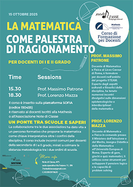 Al via il corso di formazione per docenti di scuola secondaria di primo e secondo grado "Approccio logico alle situazioni problematiche", promosso in collaborazione tra le Associazioni Mathesis e Note di Classe.