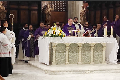 Nell'Omelia monsignor Cirulli ha richiamato i fedeli al significato profondo della fede cristiana: al crocifisso a cui il cristiano deve indirizzare sguardo e pensiero.