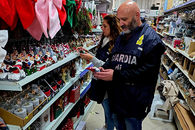 Infine, presso in negozio di Airola, i militari della Tenenza di Montesarchio hanno accertato la presenza di circa 68.400 prodotti, tra i quali addobbi natalizi e articoli da regalo non conformi alle disposizioni del Codice del Consumo.