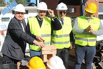 Il sindaco o chi per lui appoggia 'a cucchiarella su un mattone dove stende un po' di calce e la "prima pietra" è fatta.