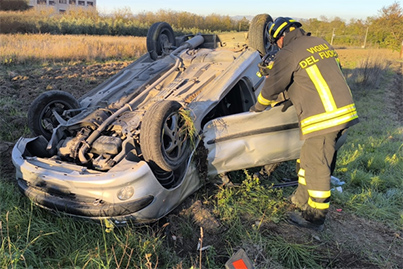 Proprio quest'ultima, all'interno della quale si trovavano due giovani trentenni, è stata quella che avuto la peggio poiché la stessa si è ribaltata ed è finita fuori strada.