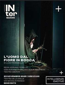 Domenica, 23 novembre, alle 21.00, al Teatro de La Salle di Benevento, si comincerà con "L'uomo dal fiore in bocca" di Luigi Pirandello, per la regia di Adriano Fiorillo, con Adriano Fiorillo e Giulia Piscitelli, una produzione Teatro Oberon Napoli.