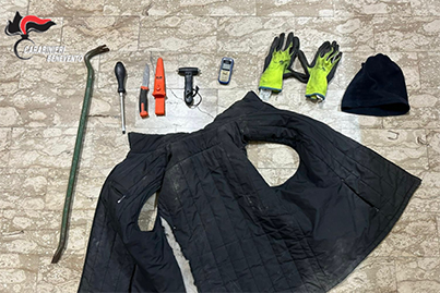 La successiva perquisizione personale e veicolare ha permesso di rinvenire e sequestrare: diversi arnesi atti allo scasso, la cui detenzione è vietata in assenza di giustificato motivo e un coltello di genere vietato, portato senza la prescritta autorizzazione.
