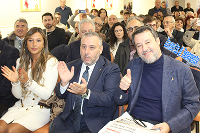 A seguire c'è stato l'intervento di Gianpiero Zinzi (nella terza foto in basso), parlamentare e segretario regionale della Lega, che ha sottolineato: Ma non dovevamo solo prenderci un caffè tra amici? commentando la sala gremita.