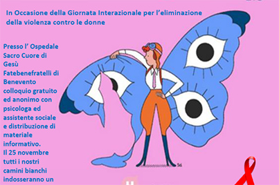 Riconoscendo l'importanza della problematica, con l'obiettivo d'incoraggiare le donne vittime di violenza a chiedere aiuto e accedere alla rete di servizi di supporto e accoglienza, la Direzione Sanitaria dell'Ospedale Sacro Cuore di Gesù Fatebenefratelli, offre la possibilità di usufruire, senza prenotazione e in forma anonima, a consulenze e colloqui con assistente sociale e psicologa".