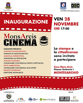Da venerdì 28 a domenica 30 novembre, a Montesarchio è in programma la prima edizione di Mons Arcis Cinema, la nuova rassegna diretta da Renato Giordano che trasformerà il paese caudino in un set a cielo aperto, animato da proiezioni, incontri, musica ed eventi speciali.