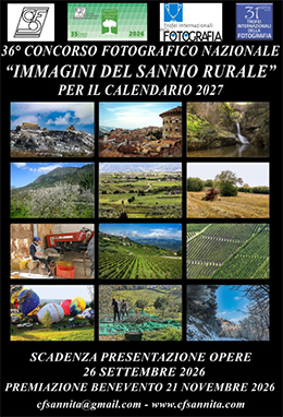 Il Circolo Fotografico Sannita esporrà da domenica 14 dicembre al prossimo 12 gennaio, le foto vincitrici del 35° Concorso Fotografico "Immagini del Sannio Rurale" per l'ormai storico calendario 2026.