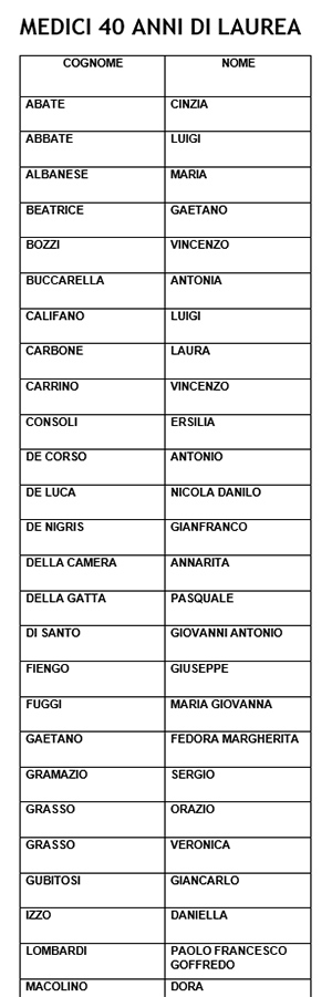 Successivamente la consegna delle pergamene ai medici che hanno tagliato il traguardo dei quarant'anni di laurea (1985-2025).