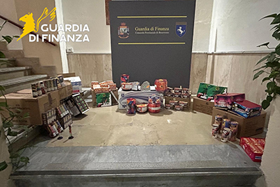 Nel quadro della costante attività di controllo economico del territorio e contrasto agli illeciti in materia di vendita di fuochi d'artificio, i finanzieri del Comando Provinciale hanno effettuato il sequestro di circa 23 chili di materiale pirotecnico in un esercizio commerciale di Benevento.