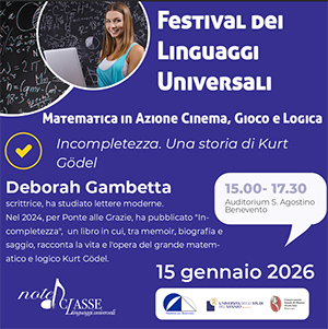 Prosegue il Festival dei Linguaggi Universali, dedicato al tema "Matematica in azione: Cinema, gioco e logica" con il secondo appuntamento dal titolo "Incompletezza".