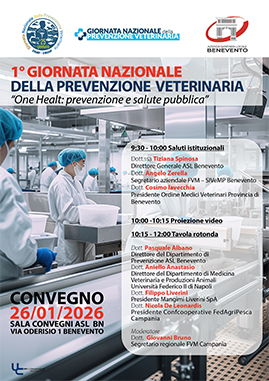 In occasione della Giornata Nazionale della Prevenzione Veterinaria, l'Asl di Benevento ha organizzato il convegno "One Health, prevenzione e salute pubblica", in programma lunedì prossimo, 26 gennaio, dalle 9.30 alle 12.00, nella Sala Convegni di via Oderisio.