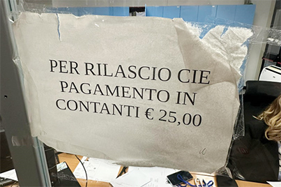 Ho rischiato di non concludere la procedura per la emissione della Carta di Identita' Elettronica perche' non avevo con me contanti