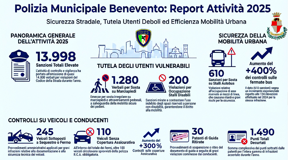 La Polizia Municipale ha sanzionato gli automobilisti con 13.998 verbali per violazione del Codice della Strada nel 2025