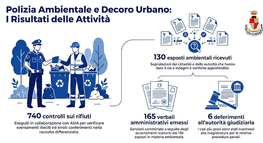 Abbiamo valorizzato poi la Polizia Ambientale con centinaia di attività congiunte con l'Asia per il corretto conferimento dei rifiuti.
