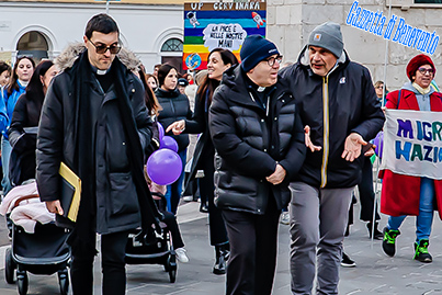 Se certe manifestazioni si moltiplicano e crescono, questo farà parimenti crescere una coscienza diversa, ha concluso l'arcivescovo Accrocca che ha poi raggiunto l'altare dove è stata pronunciata la preghiera intitolata "La pace è un cammino e Dio cammina con voi" citando papa Leone XIV.