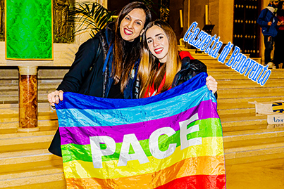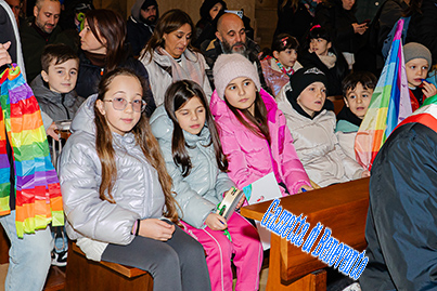 Un chiasso indescrivibile, ma coinvolgente e per niente irriguardoso nonostante fischietti e tamburi si trovassero all'interno della Cattedrale, quelli usati dai ragazzi dell'Azione Cattolica, ha caratterizzato l'attesa per l'avvio del corteo che in nome della Pace si è mosso dal Duomo per arrivare fino alla Villa Comunale.