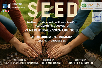 E' in programma venerdì prossimo, 6 febbraio, alle 10.30, nell'Aula Magna del Liceo Scientifico "Rummo" di Benevento la prima visione di "Seed", un cortometraggio sull'educazione ambientale e il valore dei piccoli gesti degli studenti dello stesso Istituto.