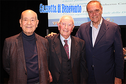 "Quale incarnato cultore di esperienze insolite, come già tante volte ho avuto modo di ricordare, in questa occasione, è mio desiderio soffermare, volutamente, l'attenzione su due espressioni profferite dal sindaco Clemente Mastella che, pochi mesi fa, mi colpirono non poco nel corso della presentazione dell'ultimo libro di Roberto Costanzo(nella seconda foto in basso, Giovanni Zarro, Roberto Costanzo e Clemente Mastella, nel corso del convegno).