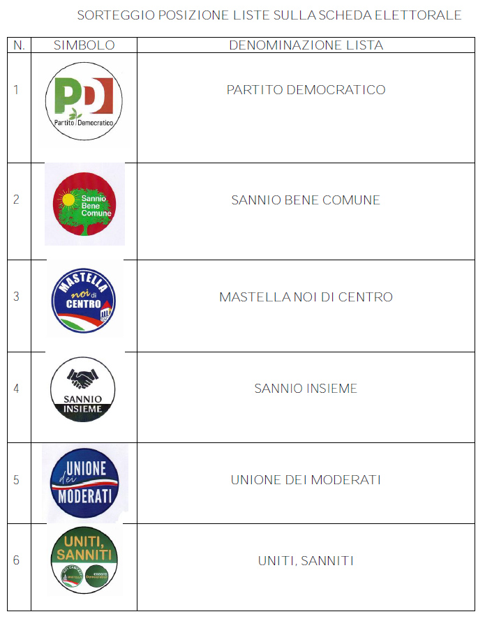 L'Ufficio ha quindi proceduto ad effettuare il sorteggio per la assegnazione della posizione di ciascuna lista sulla scheda elettorale del prossimo 28 febbraio.