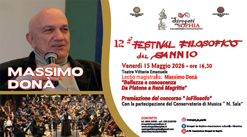 Presentata alla Stampa la XII edizione del Festival Filosofico del Sannio organizzato dall'Associazione "Stregati da Sophia" presieduta da Carmela D'Aronzo.