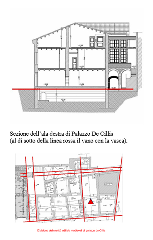 Dal pozzo l’acqua non poteva scorrere naturalmente verso la vasca e, soprattutto, solo dopo l’acquisizione nel XVII secolo degli immobili da parte dei De Cillis fu costruita la volta a botte in laterizi moderni che oggi copre la vasca e che trasformò il sito in una sorta di grotta interrata adibita probabilmente a cantina o a palmento e illuminata debolmente e suggestivamente da due simmetriche bocche di lupo a filo stradale (sic).