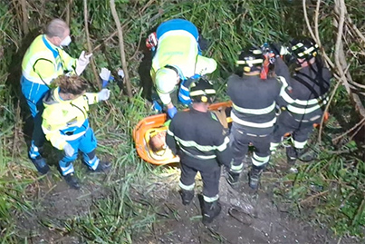 Quando è stato recuperato dai Vigili del Fuoco, era cosciente ma evidenti erano parimenti le sue precarie condizioni di salute.