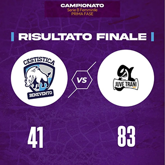 La Cestistica Benevento ha ceduto il passo, con il punteggio di 41-83, tra le mura amiche del PalaMiwa, alla New Juve Trani, nell'ottava giornata di ritorno del campionato di Serie B femminile.