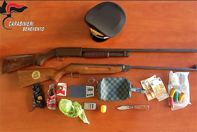 Nel corso dell'operazione, eseguita dai militari del Nucleo Operativo e Radiomobile della Compagnia di Benevento insieme a quelli della Stazione di Ponte, è stata eseguita una perquisizione domiciliare nell'abitazione del 26enne, all'esito della quale sono state rinvenute e sottoposti a sequestro un fucile semiautomatico a canna singola marca Winchester, una carabina e 6 cartucce calibro 12 calibro, risultati, poi, riconducibile al 60enne.