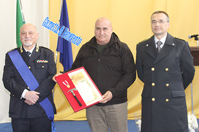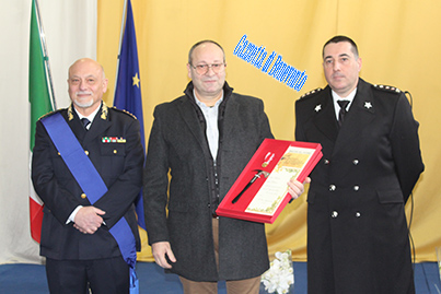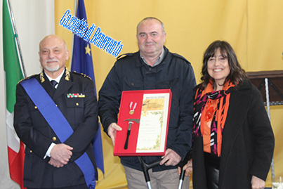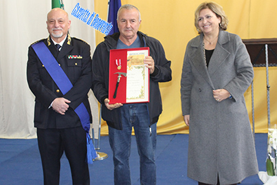 A questo punto, dopo l'intervento del comandante Capolongo, di cui abbiamo già dato conto innanzi, c'è stata la consegna delle benemerenze ai Vigili del Fuoco che si sono particolarmente distinti nell'espletamento del loro servizio e che sono in quiescenza.