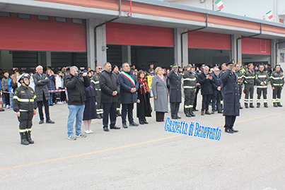 All'interno della palestra si è quindi svolta la cerimonia preceduta dalla proiezione di un filmato sui Vigili del Fuoco a livello nazionale al termine del quale il vice comandante vicario, Filomena Donato, ha dato lettura del messaggio del capo del Corpo Nazionale dei Vigili del Fuoco, Eros Magnino e poi quello del direttore regionale Michele Mazzaro peraltro recentemente nominato in questa carica lo scorso 2 febbraio.