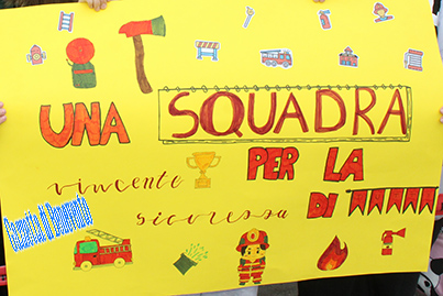 Al termine di questa cerimonia ci si è spostati all'esterno dove c'è stata la esibizione dei Vigili del Fuoco in manovre di addestramento.