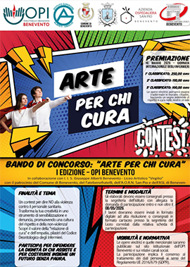 Giovedi' prossimo, 12 marzo, nell'Aula Magna dell'Istituto, in occasione della "Giornata nazionale di educazione e prevenzione contro la violenza nei confronti degli operatori sanitari e socio-sanitari", verra' presentato il contest "Arte per chi cura"