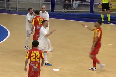 Inserito il portiere di movimento, il Benevento 5 cerca il gol con una punizione interessante di Renoldi, con il pallone che finisce di poco fuori.