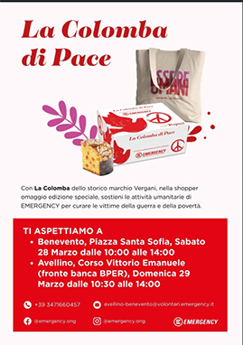 Tutte le informazioni utili e le piazze dove si potrà acquistare la Colomba di Pace, si possono consultare sul sito: (https://www.emergency.it/colomba/).