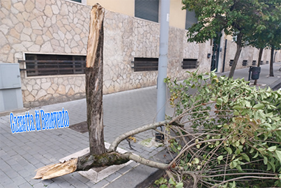 Un altro licustro, con un fusto di buona consistenza e di dichiarata età, è caduto sotto le forti folate di vento.