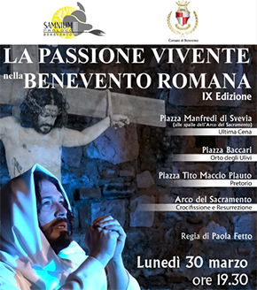 Il Comune di Benevento ha informato che, in ragione dello spostamente dell'evento "La Passione vivente nella Benevento Romana", a lunedì 30 marzo, i dispositivi chiusure traffico e divieti sosta, inizialmente previsti per domani, di cui parliamo in altra parte del giornale, saranno attuati proprio lunedì 30 marzo.