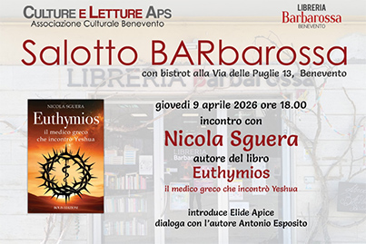 Giovedì prossimo, 9 aprile, alle 18.00, alla Libreria "Barbarossa" (traversa Porta Rufina, Benevento), si parlerà del romanzo di Nicola Sguera "Euthymios" (Bolis edizioni, 2025).